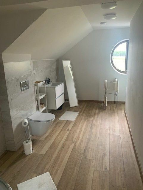 Dom podzielony na dwie części z osobnymi wejściami - parter i poddasze użytkowe, które może stanowić zgraną całość lub doskonałą bazę dla stworzenia agroturystyki - na poddaszu znajdują się 4 duże pokoje, 2 łazienki i część wspólna do dowolnej aranżacji.